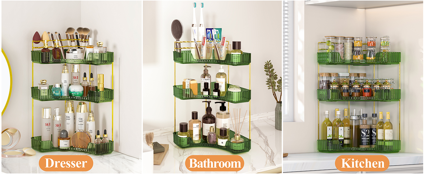 【Multipurpose Use】This corner cabinet organizer can be used as a perfume holder organizer, bathroom organizer countertop, dresser organizer countertop, skincare storage organizer, makeup holder, lazy susan organizer, etc. the bedroom, bathroom, dresser, and kitchen are good places to place them, they can match well with your house, making your house exquisite and elegant.