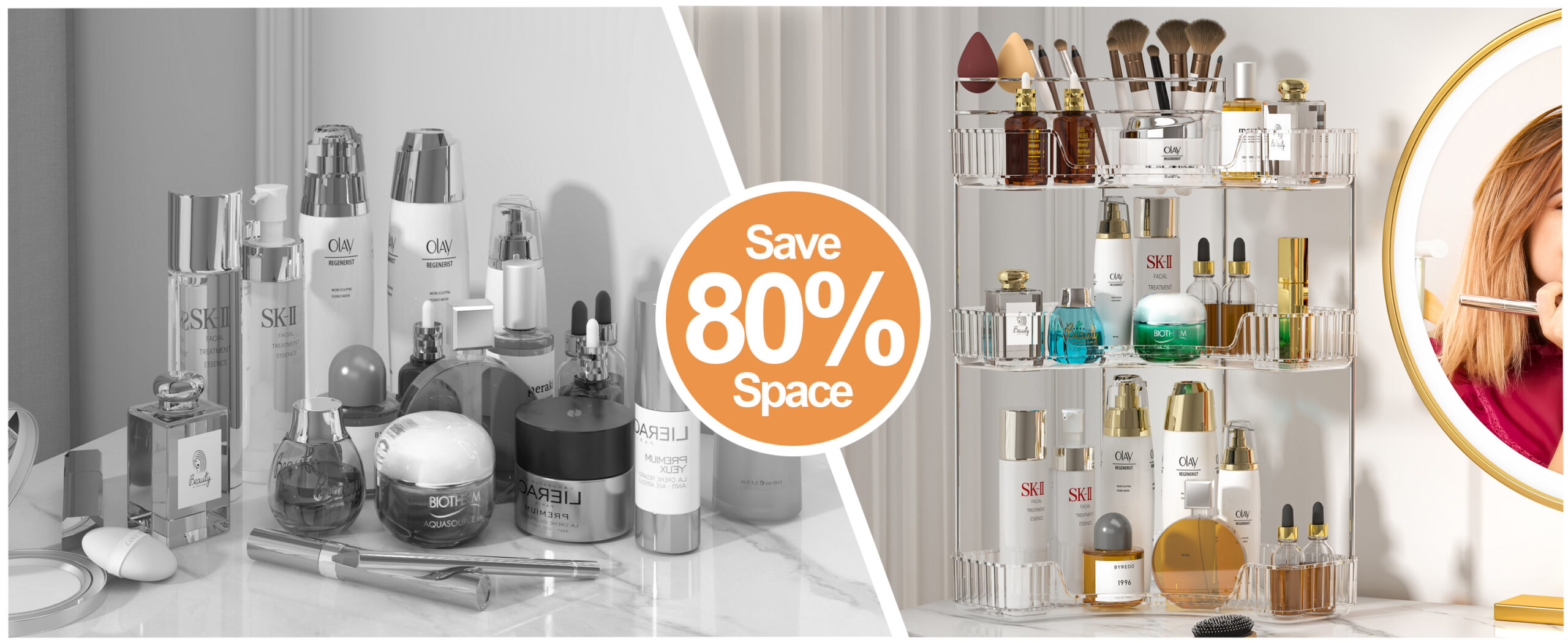 【Makeup Brush Holder】No need separate organizers for your makeup brushes and makeups anymore. Our 2-in-1 skincare organizer is the perfect solution that provides a convenient spot for beauty sponges, makeup brushes. Additionally, can also be used to store toothbrushes in the bathroom.