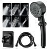 SUNZOS Shower Head and Hose 1.5M with Bracket,Water Saving Shower Head,Black Shower Head and Hose with 6 Modes