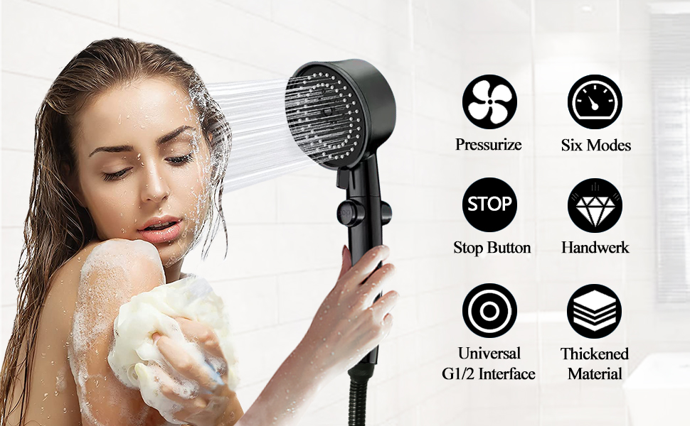 - 【Built-in Turbocharger】:This water saving shower head is equipped with a built-in turbine. Double turbocharger and a powerful and unique shower head to provide you with sufficient water and pleasant shower time. Even if the water pressure is very low, it can ensure a balanced water supply.