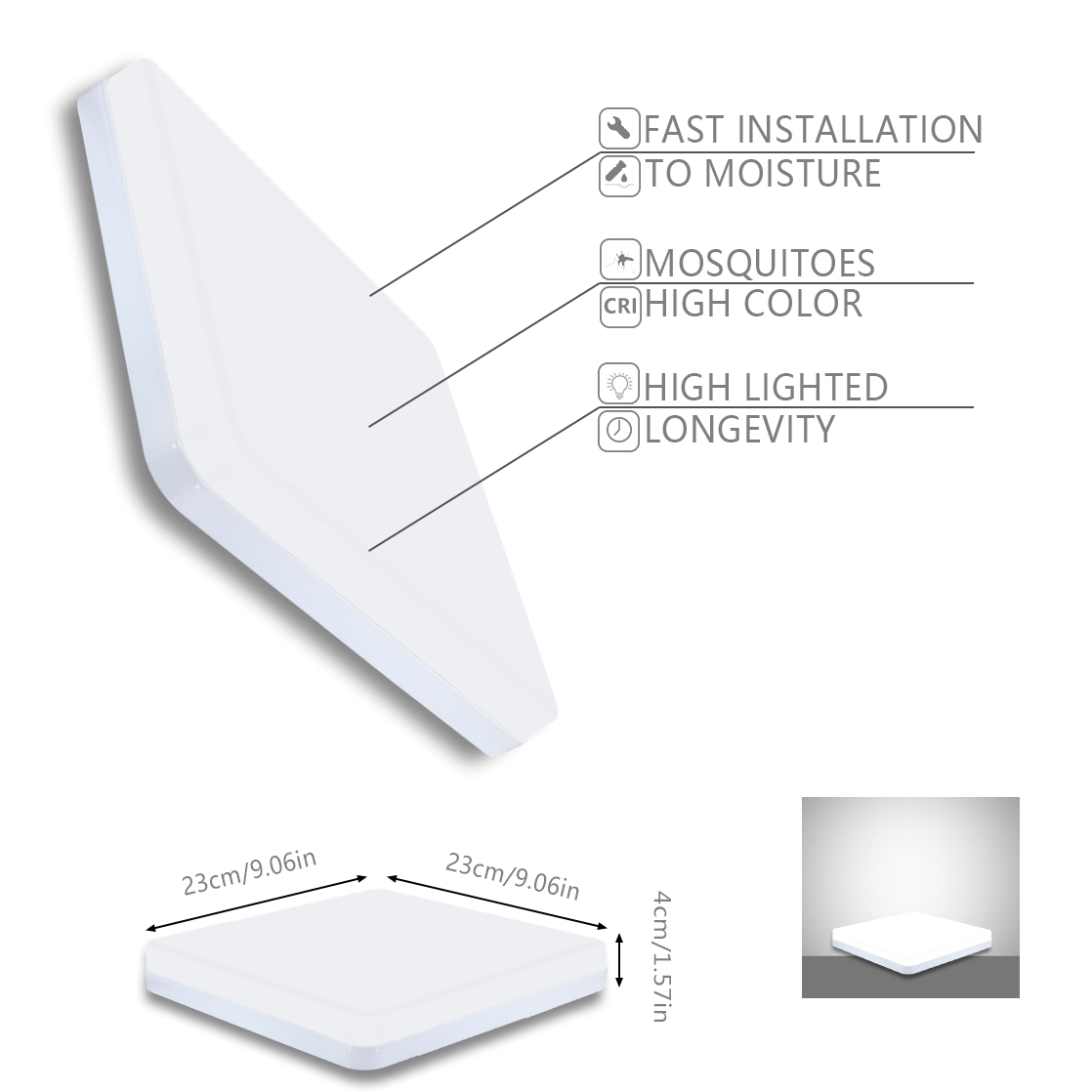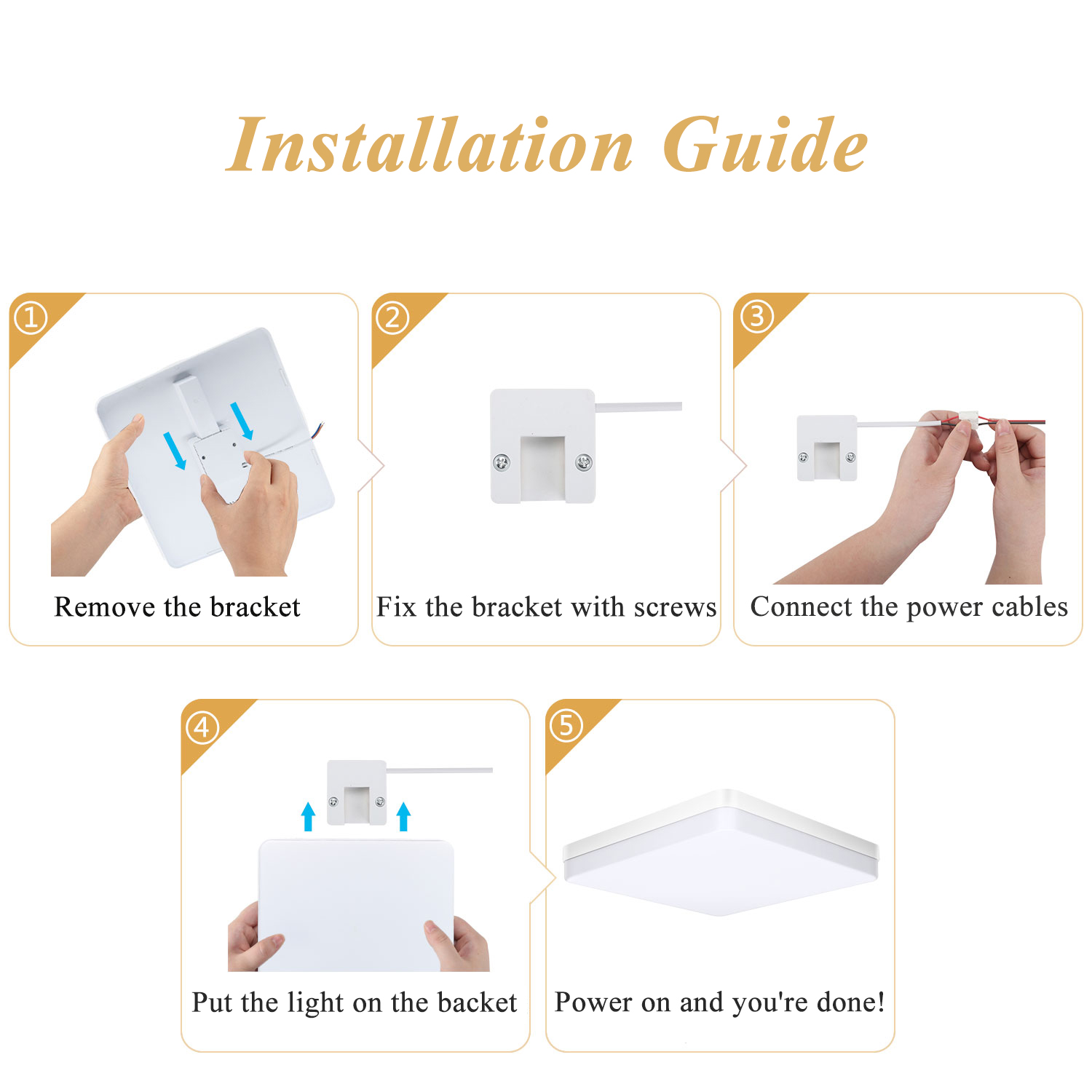 【Easy to Install】Our flush mount ceiling lights have a unique installation method, no electrician or ground wire required. Just follow the attached user manual, even beginners can easily finish.