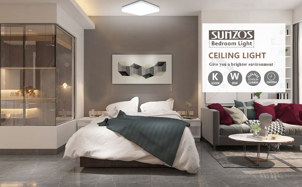【High Brightness】 SUNZOS led ceiling lights are made of 240 high-quality LED chips, provide you with 3240lm brilliant white light. With the lifespan of more than 20,000 hours, let you rid of trouble of replacing the bulb and continuously glow for a long time.