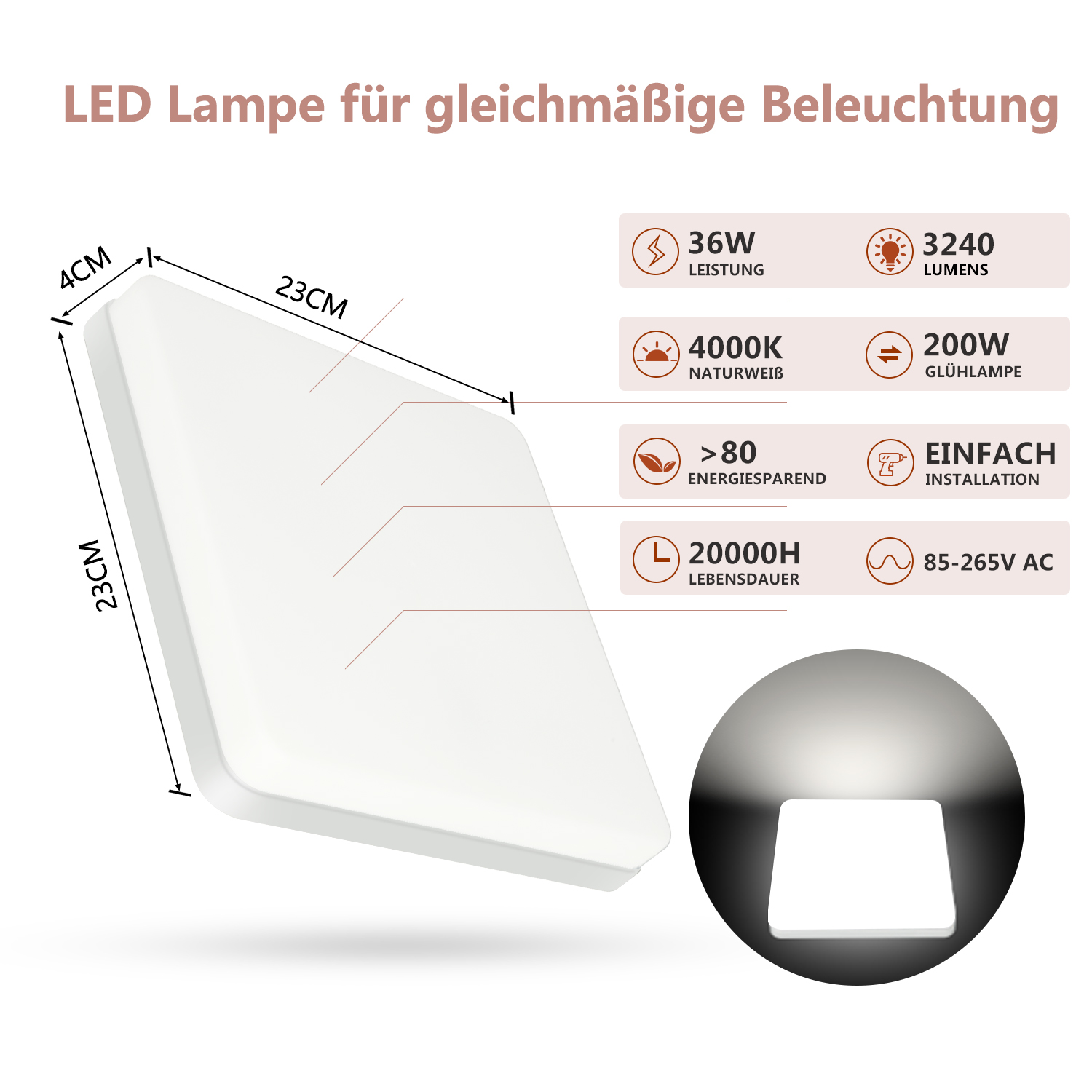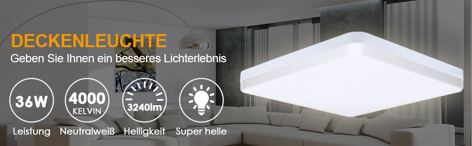 【Weite Verwendung】►Sie können die Deckenleuchte in einem Raum von etwa 10 bis 15 Quadratmeter befestigen. Ideal Deckenleuchte Wohnzimmer, Deckenlampe Wohnzimmer, Deckenbeleuchtung, Schlafzimmer, Kinderzimmer, Esszimmer, Arbeitszimmer, Werkstatt, Küche, Flur , Diele, Balkon, Korridor, Keller, Treppenhaus, Lager usw, wo neutralweißes Licht eine gemütliche Atmosphäre erzeugt.
