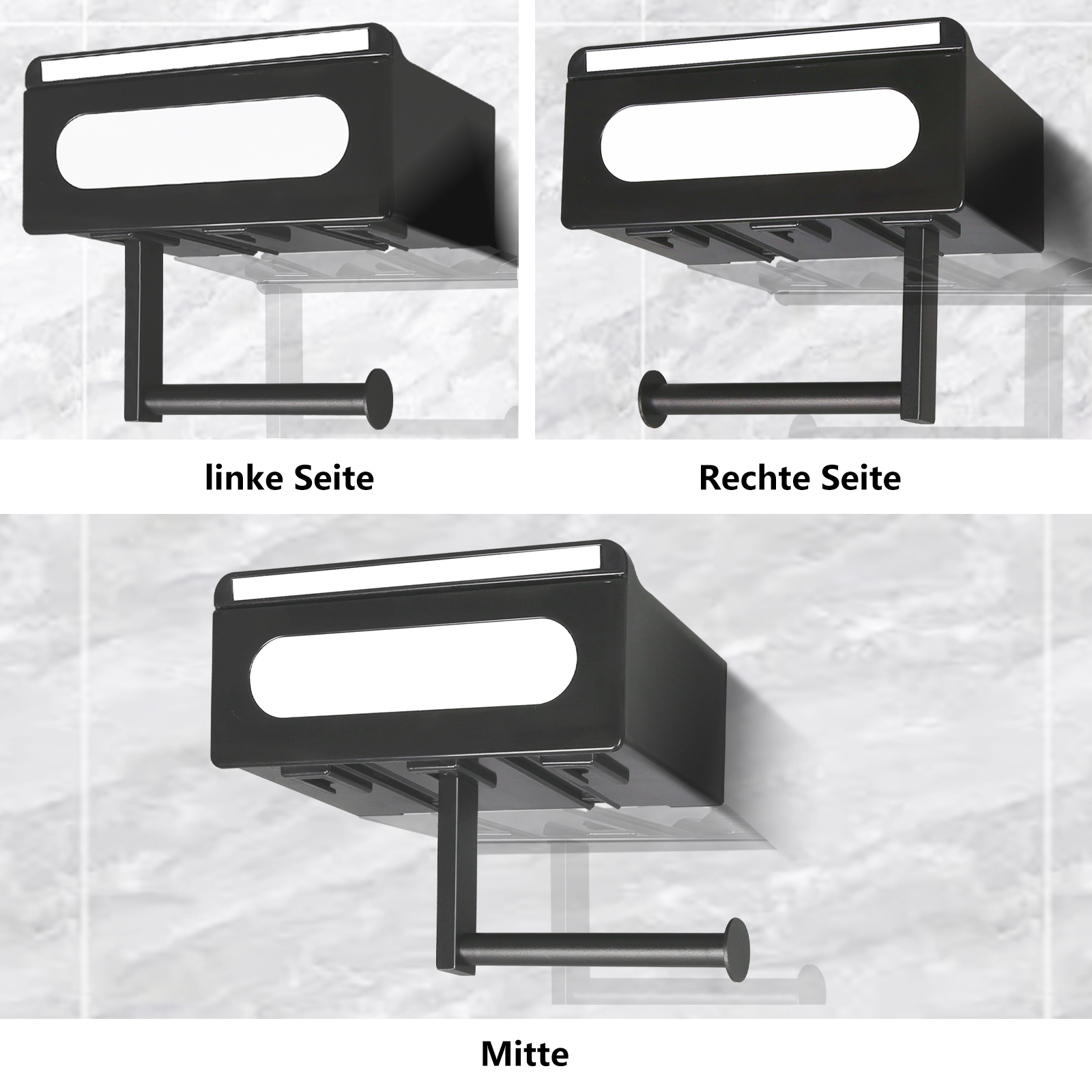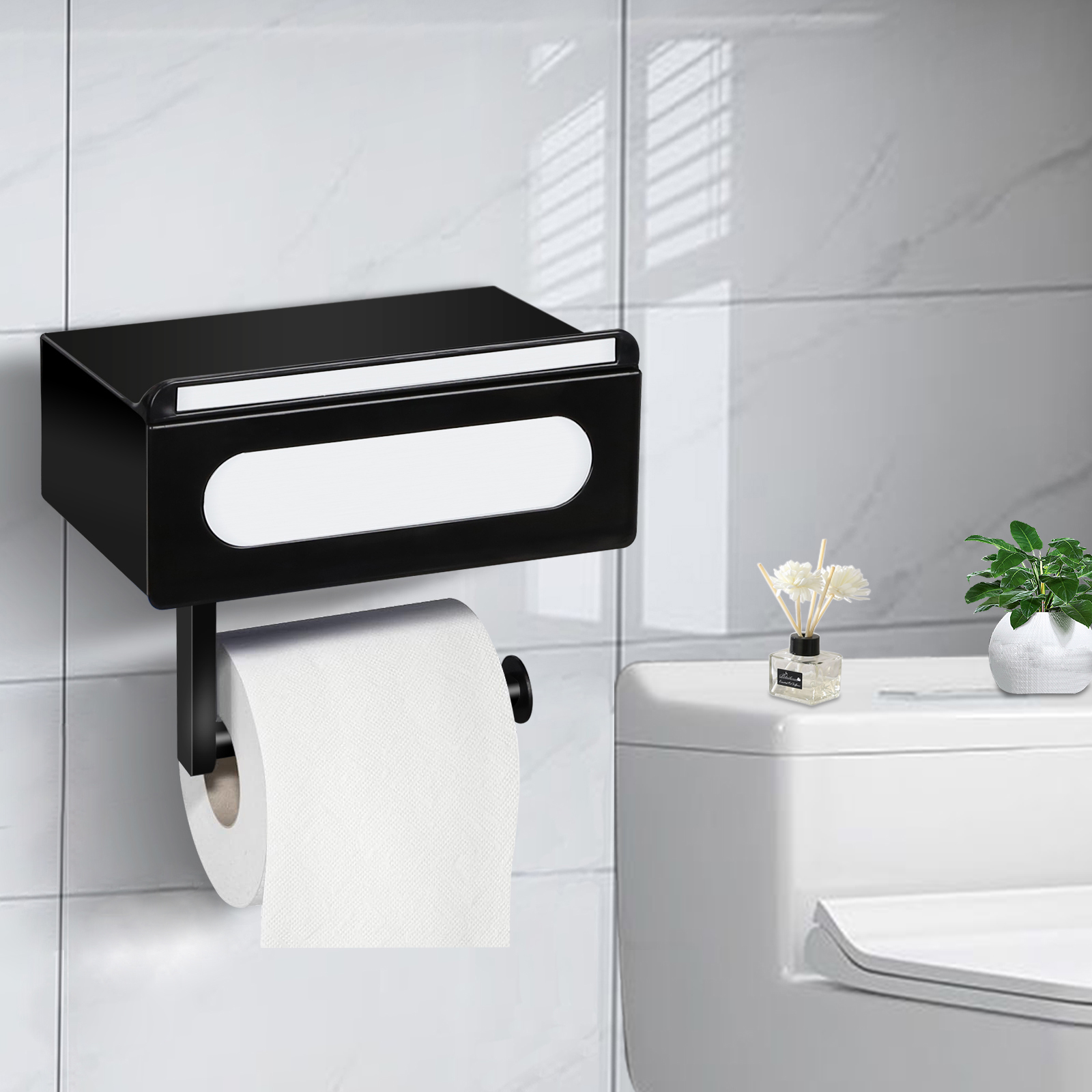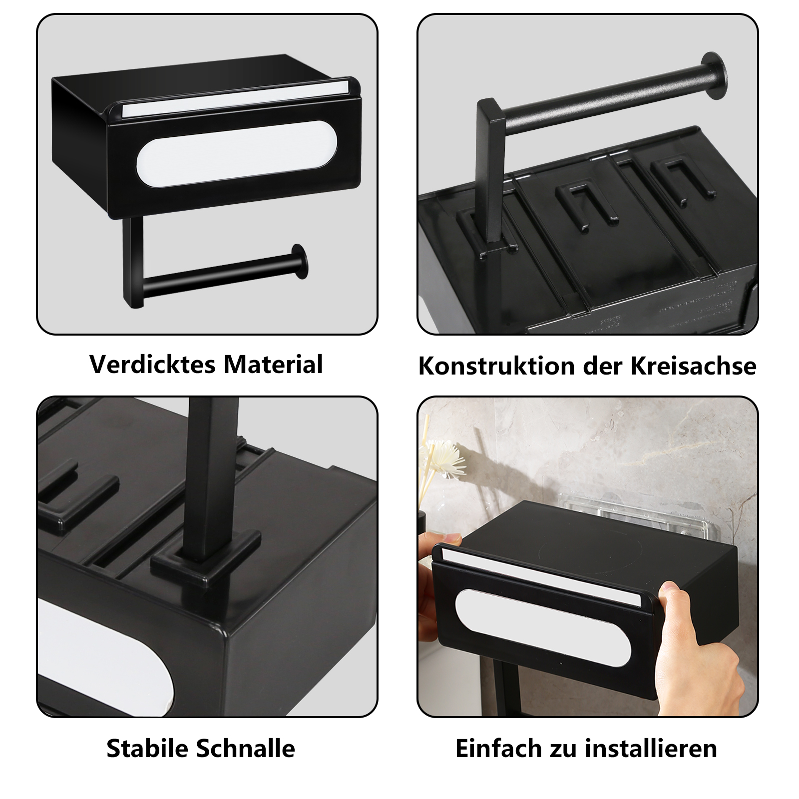 SUNZOS Klopapierhalter Ohne Bohren,Toilettenpapierhalter Schwarz,Klopapierhalter mit Feuchttücherbox,WC Toilettenpapierhalter mit Ablage für Badzimmer,Selbstklebend or Bohren