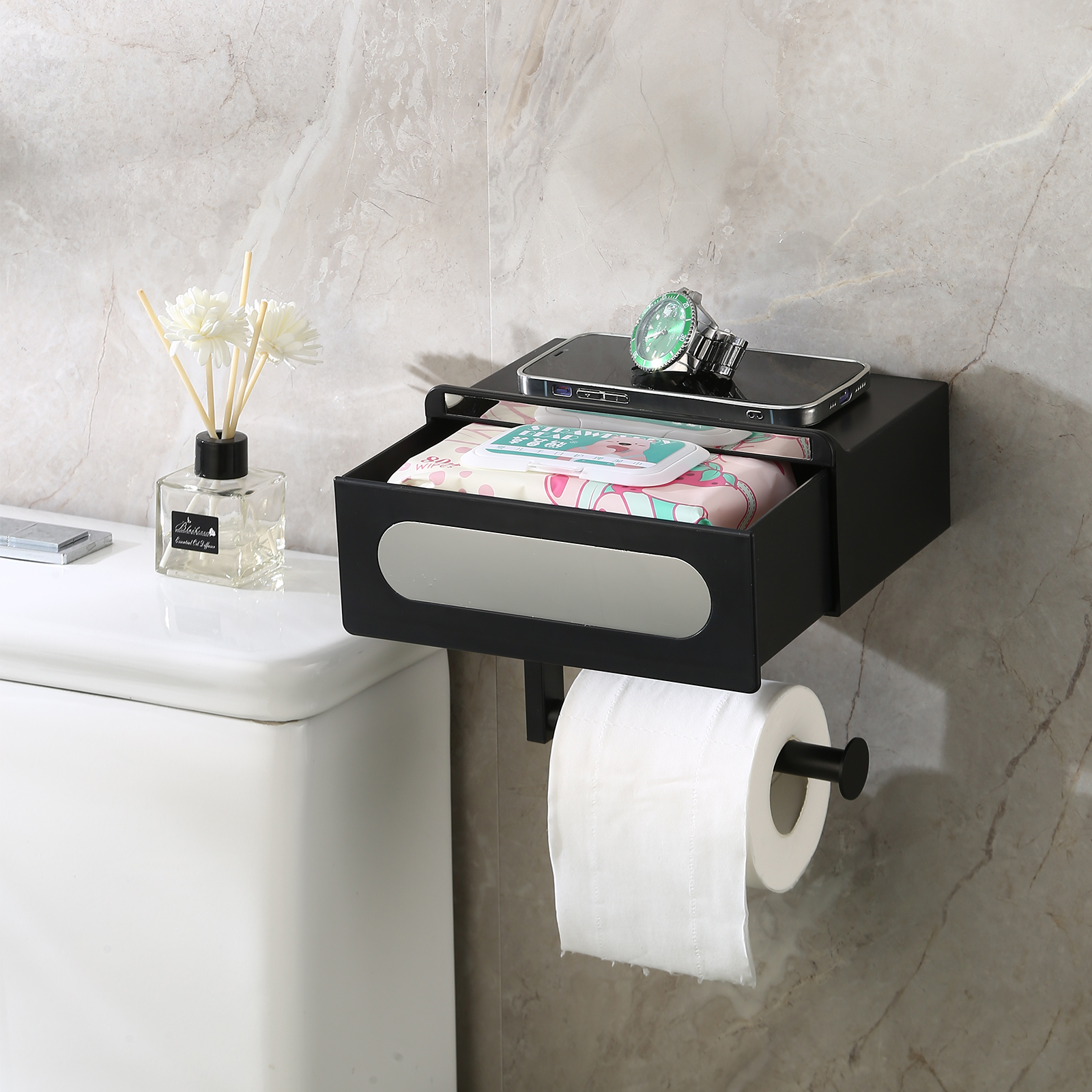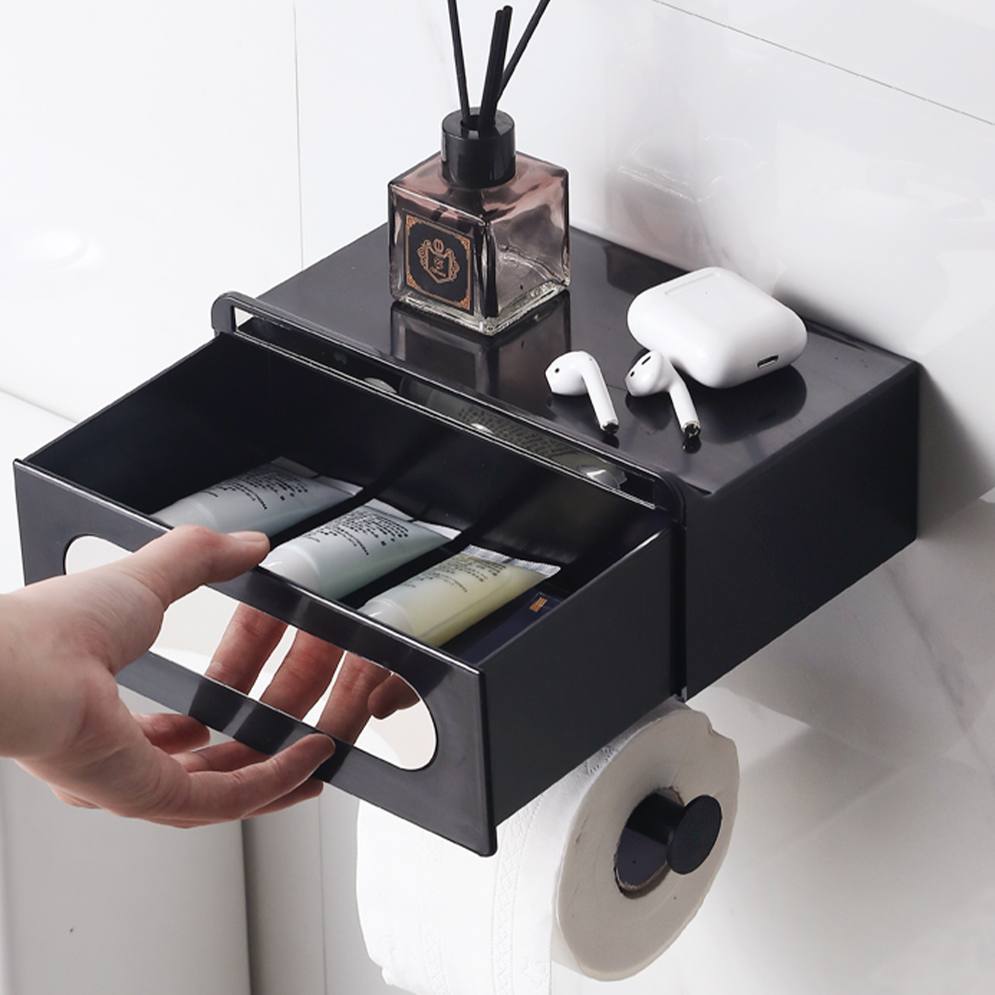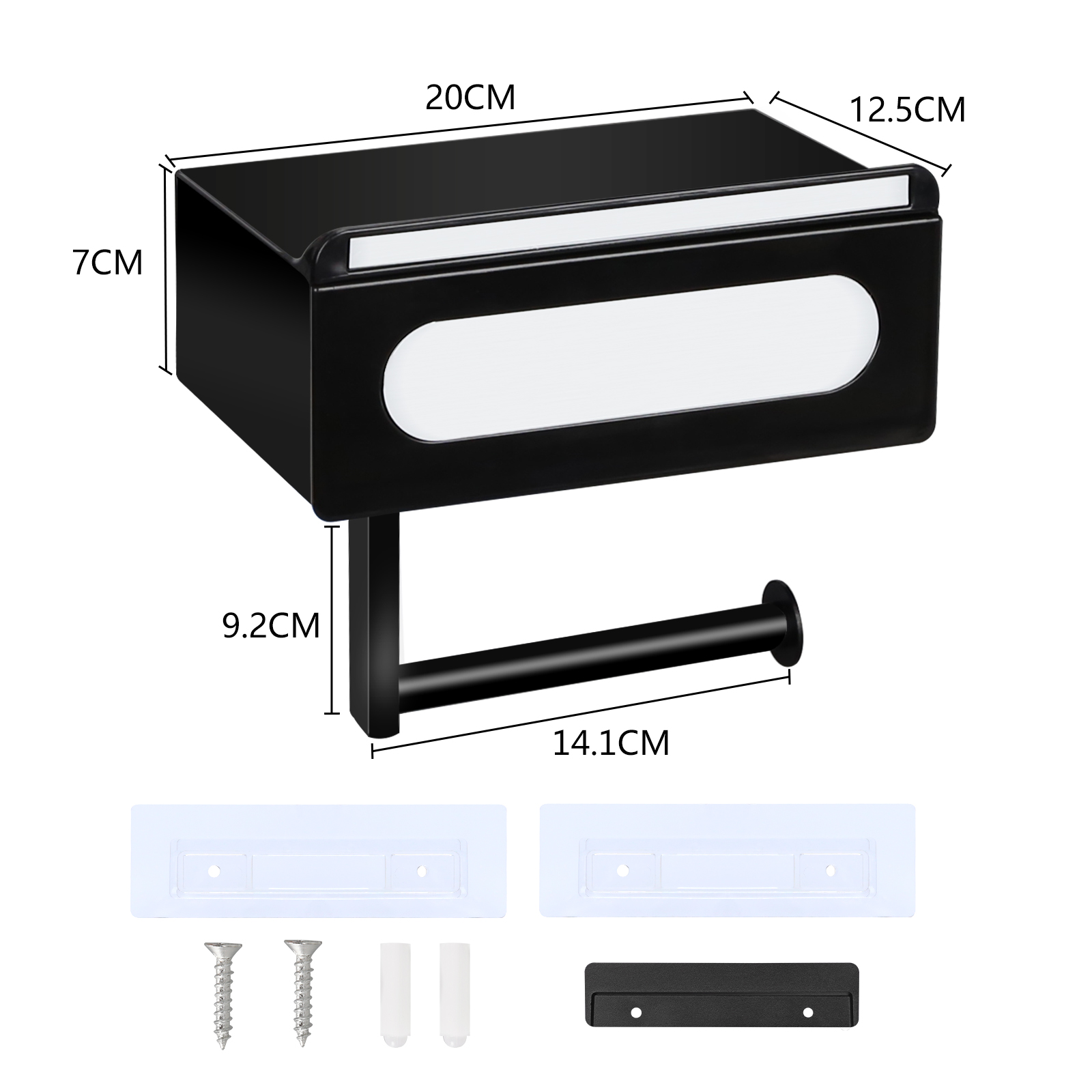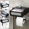 SUNZOS Klopapierhalter Ohne Bohren,Toilettenpapierhalter Schwarz,Klopapierhalter mit Feuchttücherbox,WC Toilettenpapierhalter mit Ablage für Badzimmer,Selbstklebend or Bohren