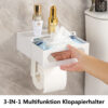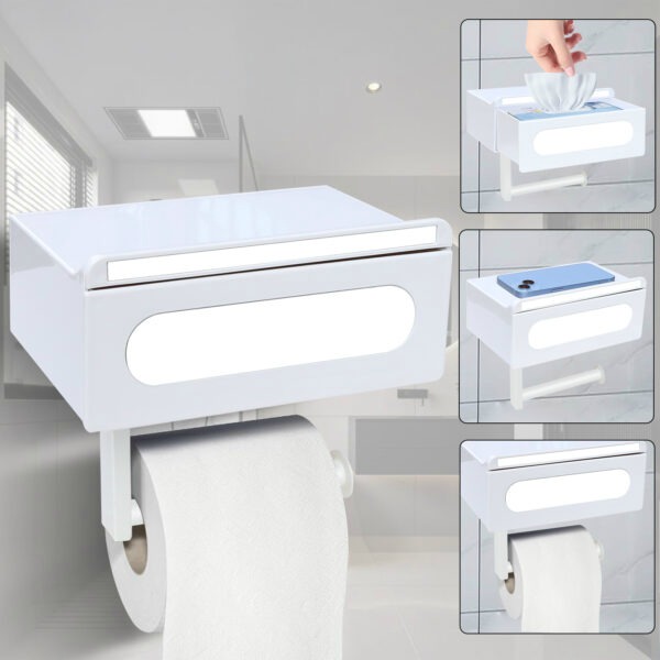 【3-IN-1 Multifunktion】SUNZOS toilettenpapierhalter ohne bohren,das L-förmige Papierrollendesign macht es bequemer, die Papierrolle zu ersetzen, und das Papier kann glatt nach unten gezogen werden, ohne stecken zu bleiben; Toilettenpapierhalter mit Regalen, kann Gegenstände wie Handys, Aromatherapie, Blumen usw. halten; Toilettenpapierhalter mit nassem Handtuchkasten, kann feuchte Tücher, Taschentücher, Gesichtstücher, persönliche Gegenstände usw.